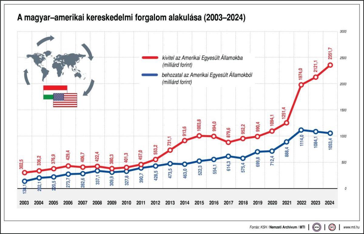 Szijjártó Péter hangsúlyozta: a 190 milliárd forintos összeg az elmúlt 11 év legmagasabb értéke, vagyis több mint egy évtizede nem érkezett ennyi amerikai tőke Magyarországra.